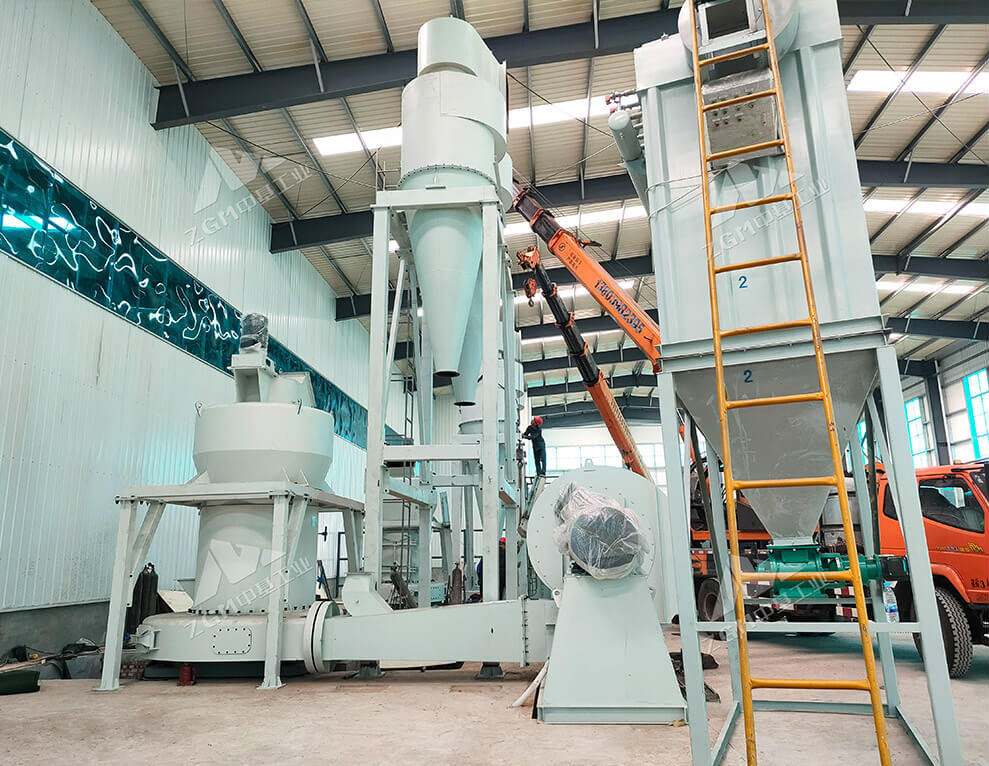首先,特种耐火材料原料经皮带机均匀定量地送入YGM-Q欧版强力磨粉机进行研磨,研磨后的物料被风机气流送入选粉机进行分级,在分析机的作用下,不符合细度要求的物料落入磨室内重新研磨,合格的物料进入旋风集粉器内,进行分离收集,收集后经过干式除铁器除铁后,生产出成品粉体。